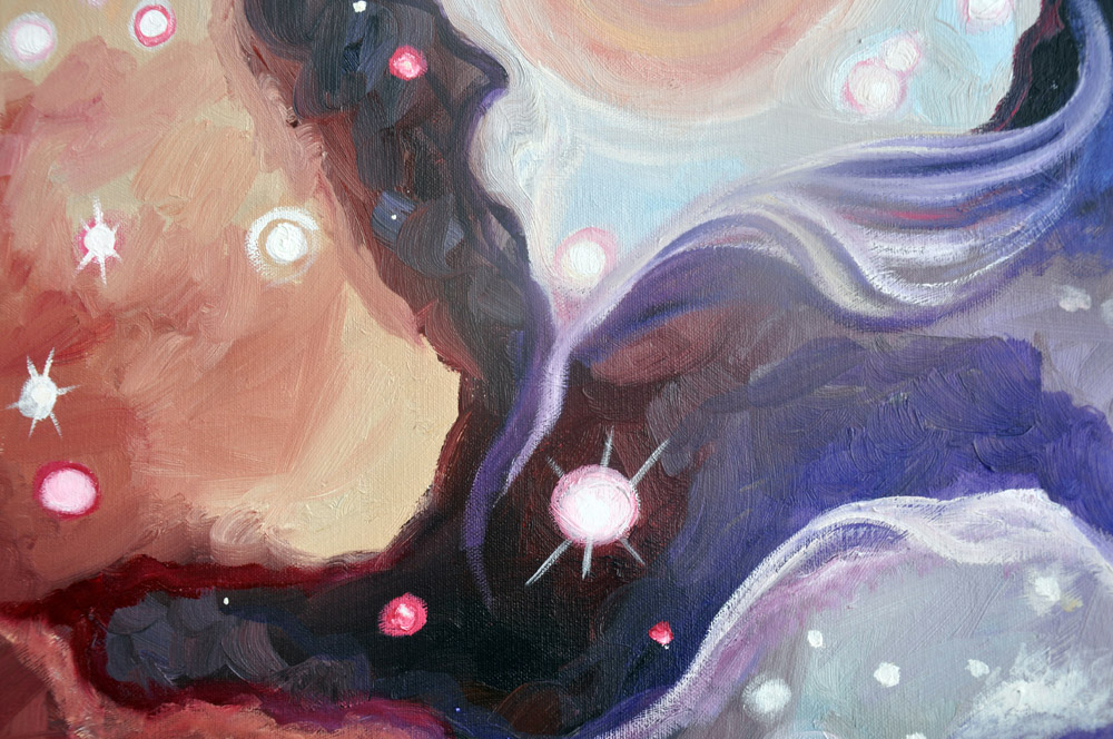The atmosphere moves in waves and ripples. Brilliant stars shine out of the depths of space.